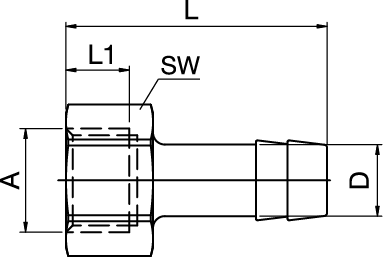 Hosetail Fitting, Female Thread